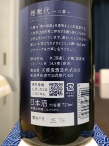 お酒の備忘録(53)「雅楽代〜六華〜」